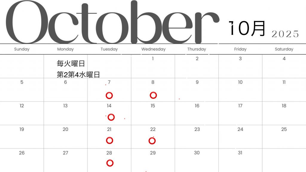 10月定休日のお知らせ