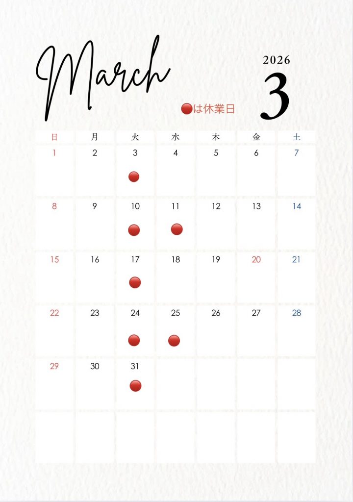 3月定休日のお知らせ